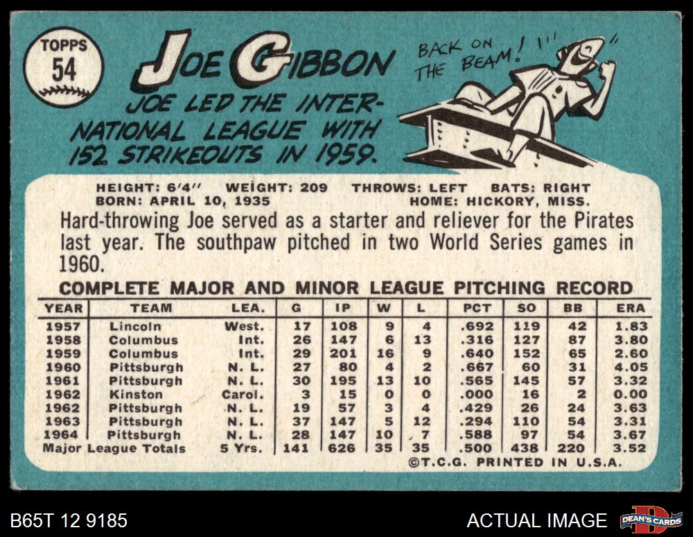 1965 Topps #54 Joe Gibbon 4 - VG/EX