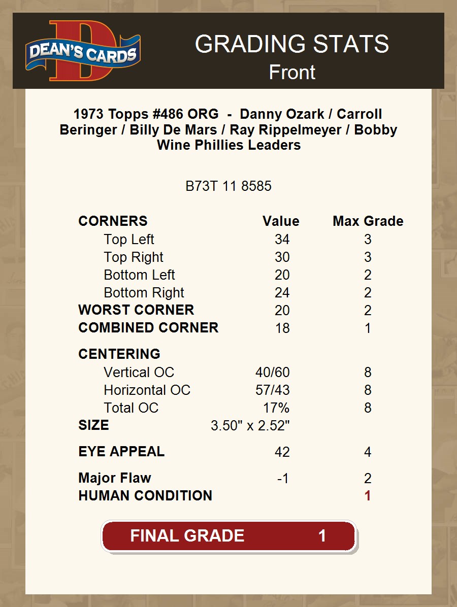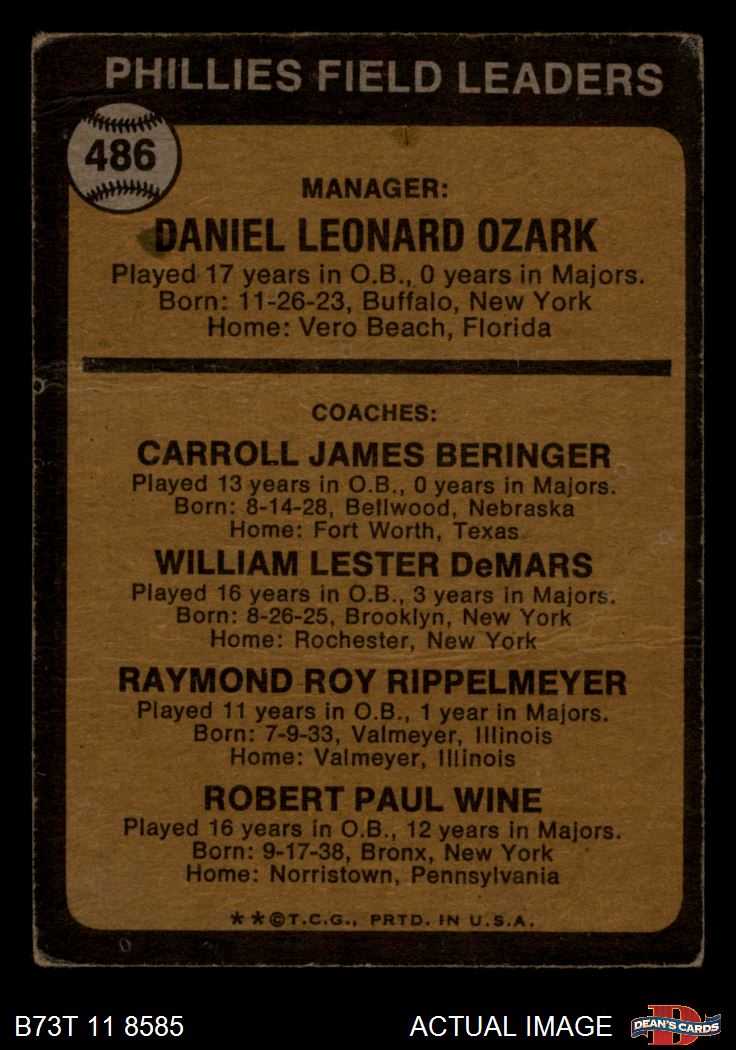 1973 Topps #486 ORG - Danny Ozark / Carroll Beringer / Billy De Mars / Ray Rippelmeyer / Bobby Wine Phillies Leaders 1 - POOR