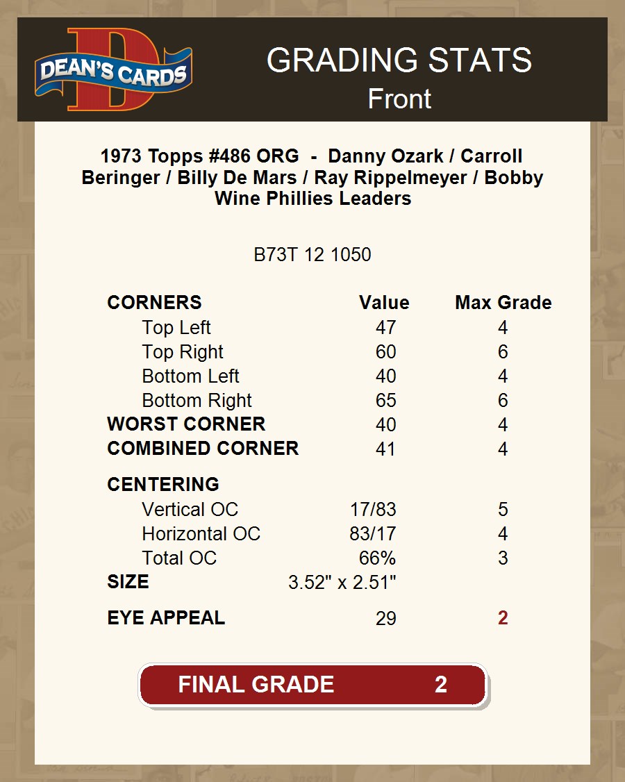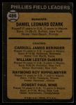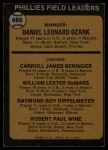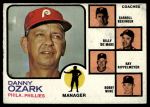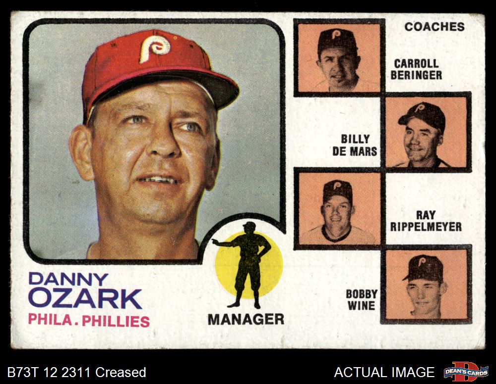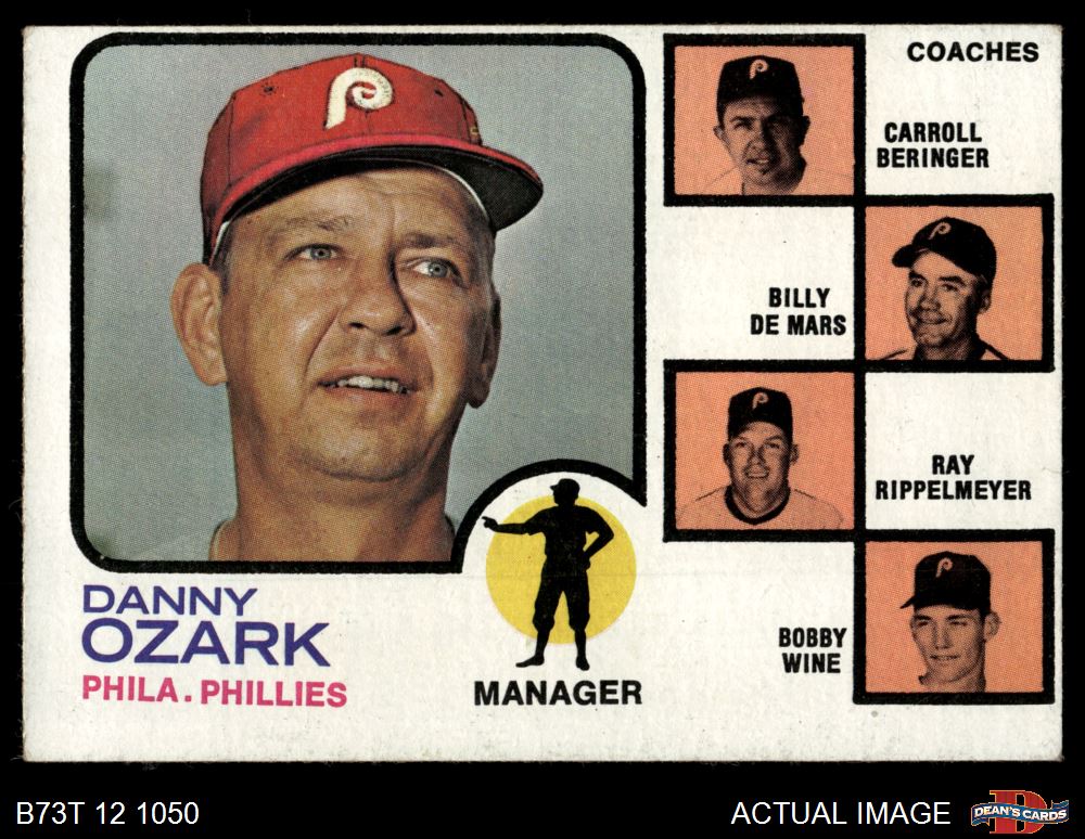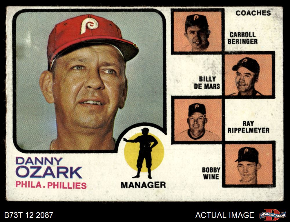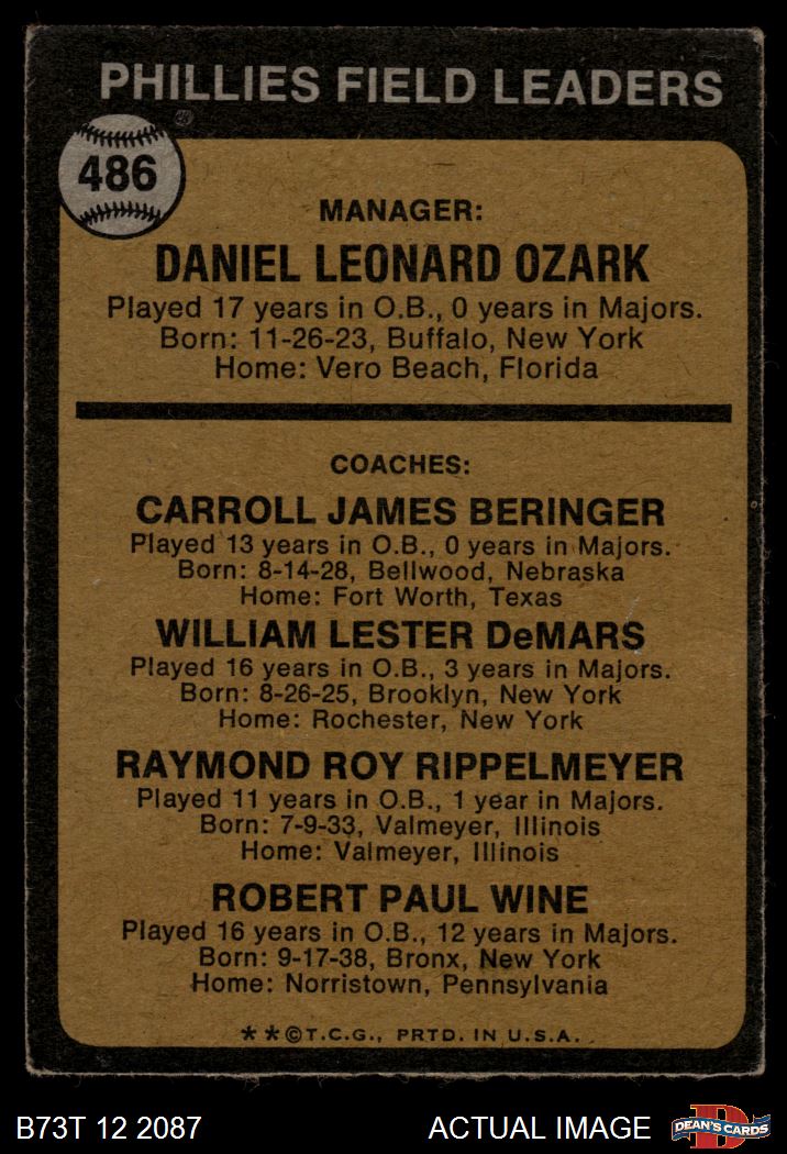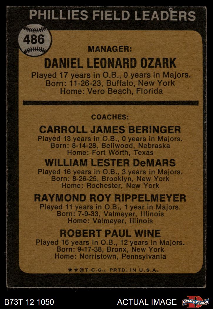1973 Topps #486 ORG - Danny Ozark / Carroll Beringer / Billy De Mars / Ray Rippelmeyer / Bobby Wine Phillies Leaders 2 - GOOD
