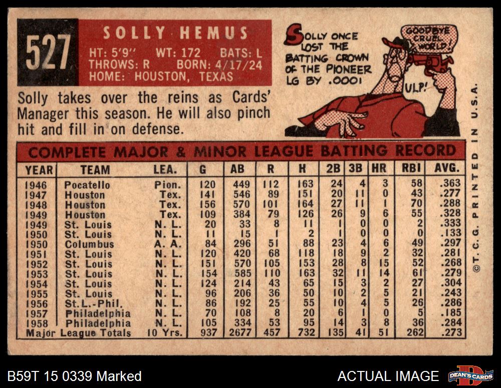 1959 Topps #527 Solly Hemus 1.5 - FAIR