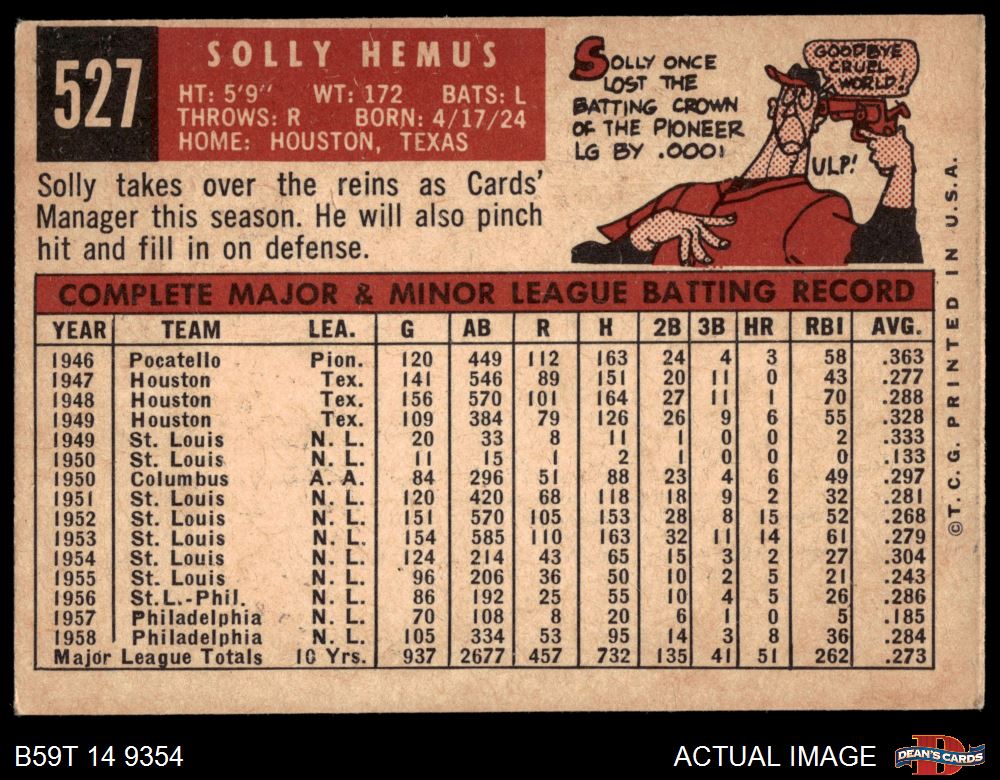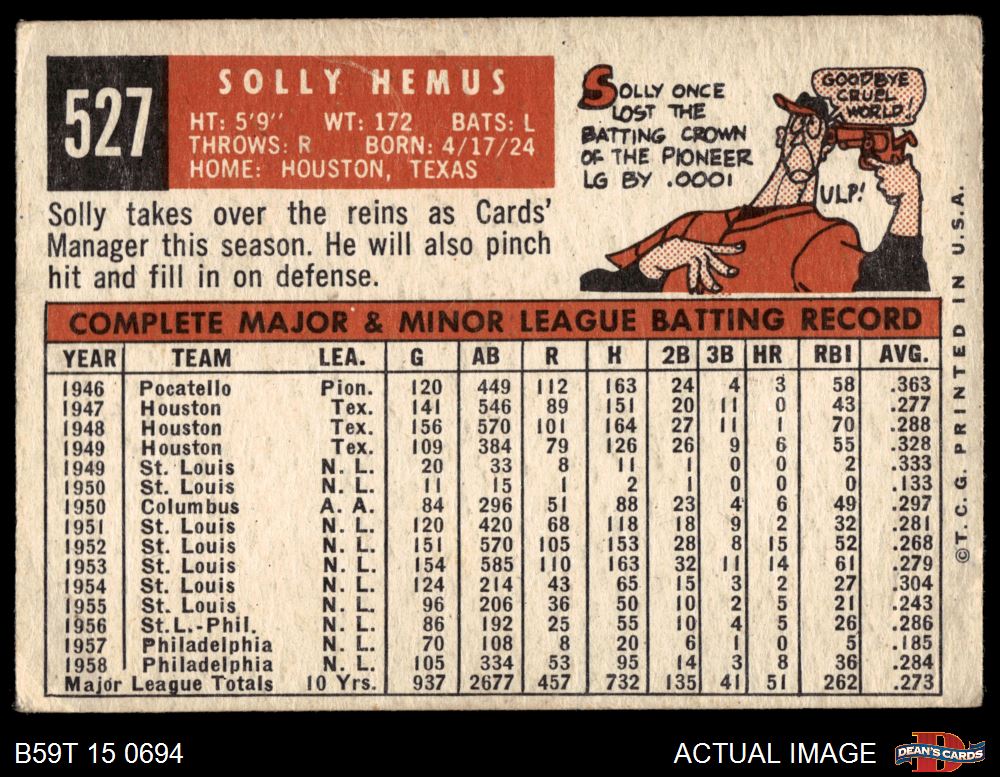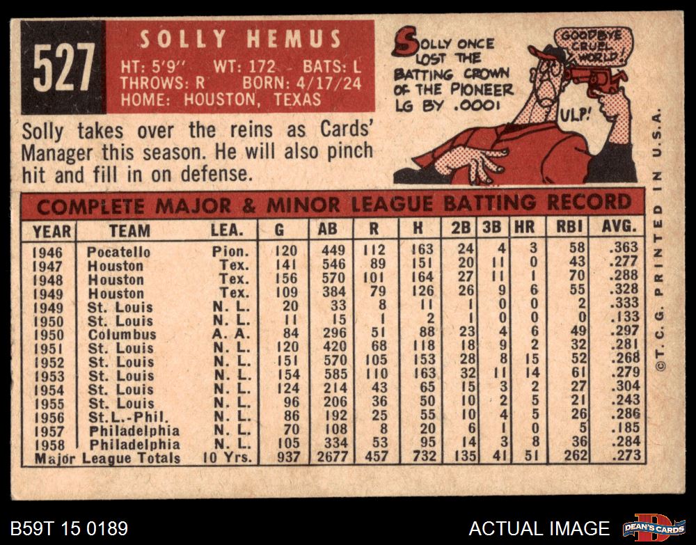 1959 Topps #527 Solly Hemus