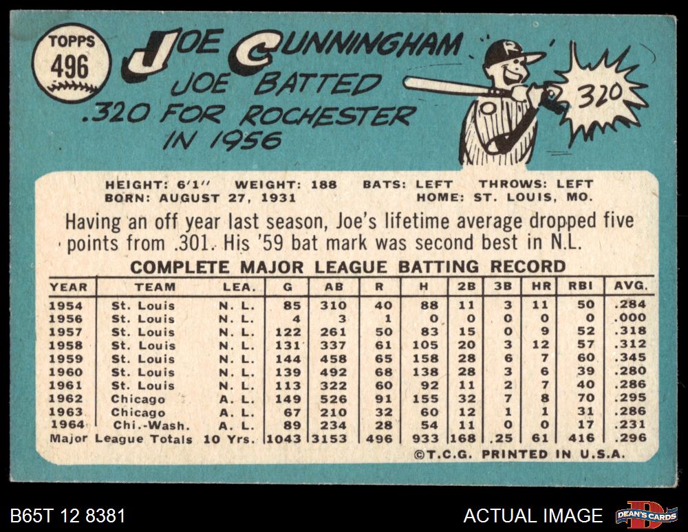 1965 Topps #496 Joe Cunningham 3 - VG