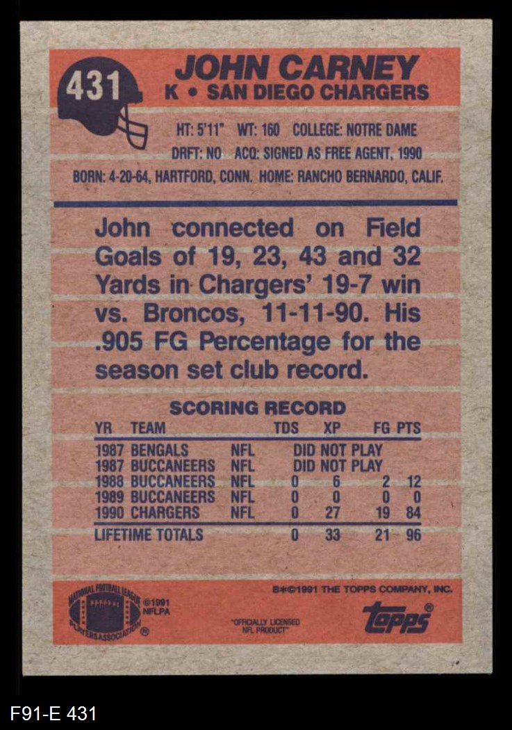 1991 Topps #431 John Carney