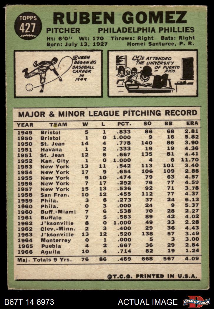 1967 Topps #427 COR Ruben Gomez
