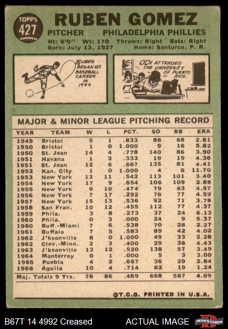 1967 Topps #427 COR Ruben Gomez 2 - GOOD