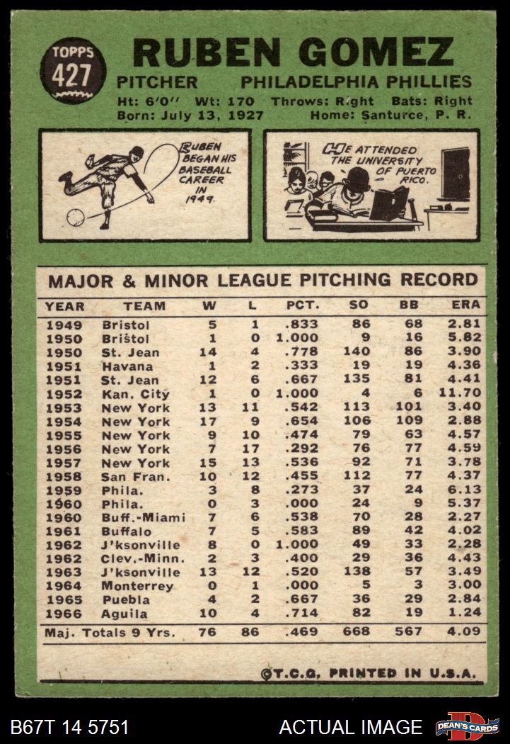 1967 Topps #427 COR Ruben Gomez 4 - VG/EX
