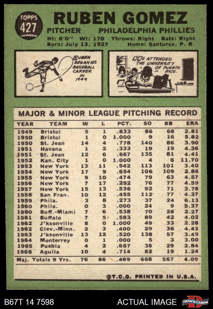 1967 Topps #427 COR Ruben Gomez 6 - EX/MT