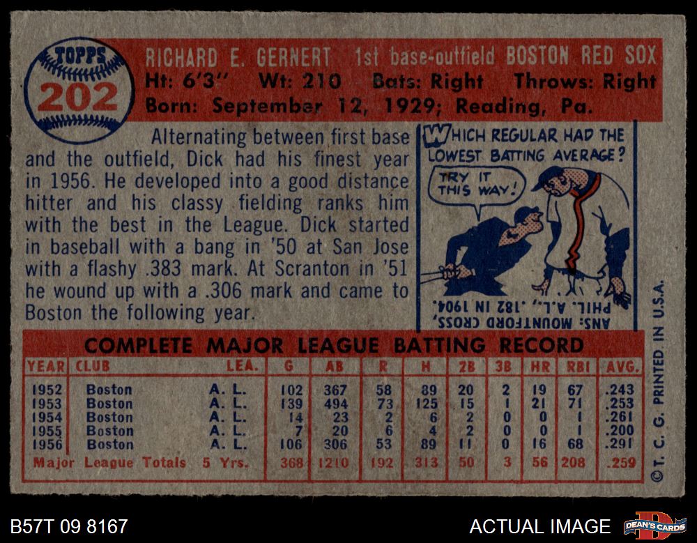 1957 Topps #202 Dick Gernert Front Thumbnail
