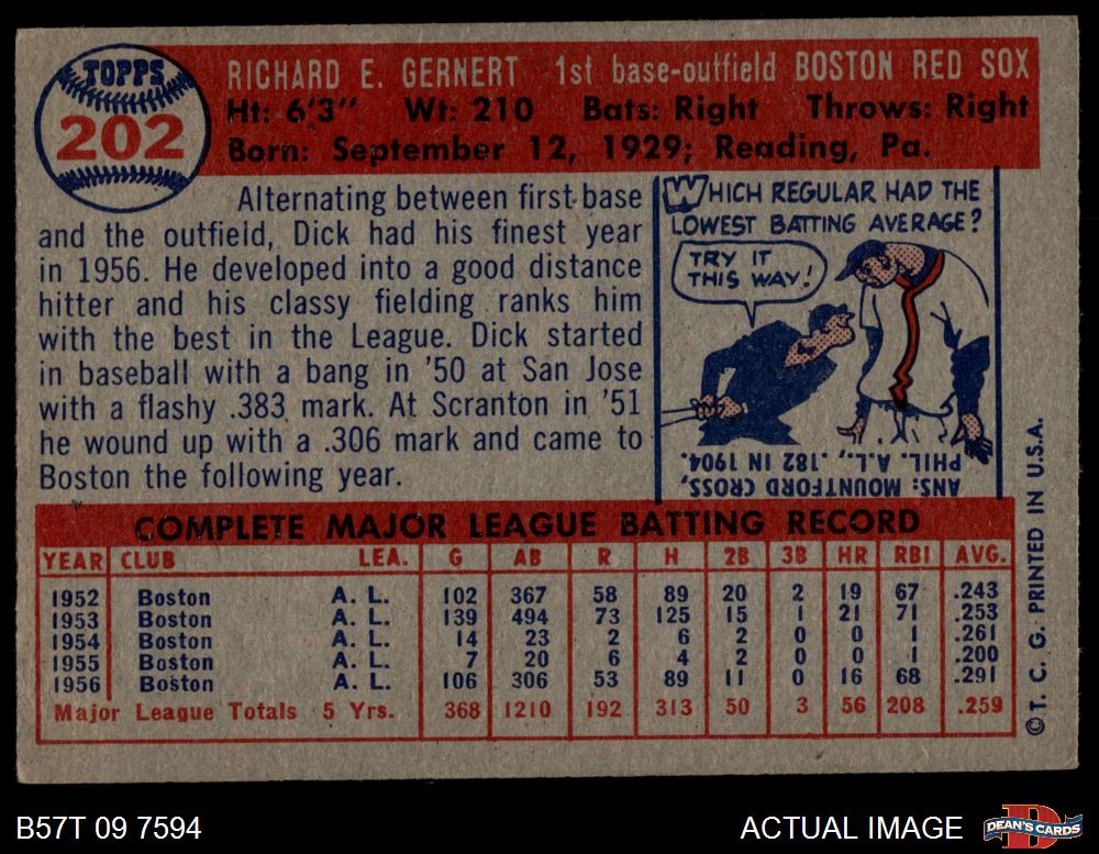 1957 Topps #202 Dick Gernert 4 - VG/EX