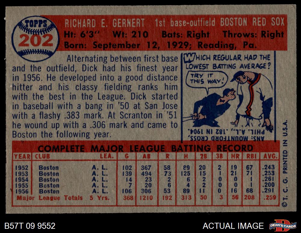1957 Topps #202 Dick Gernert 5 - EX