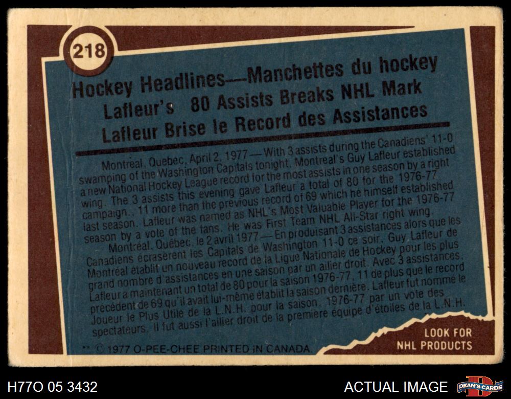 1977 O-Pee-Chee #218 - Guy Lafleur Record Breaker 1.5 - FAIR