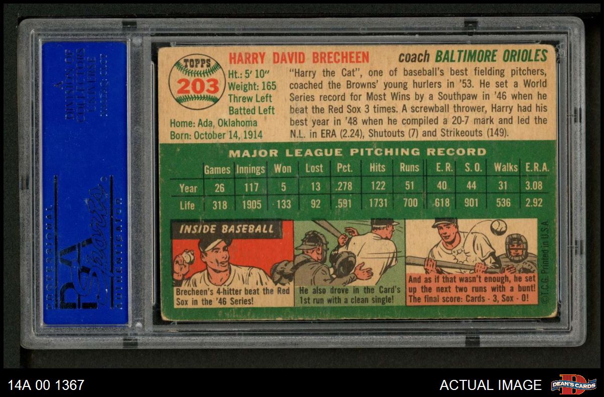 1954 Topps #203 Harry Brecheen PSA AUTOGRAPHED