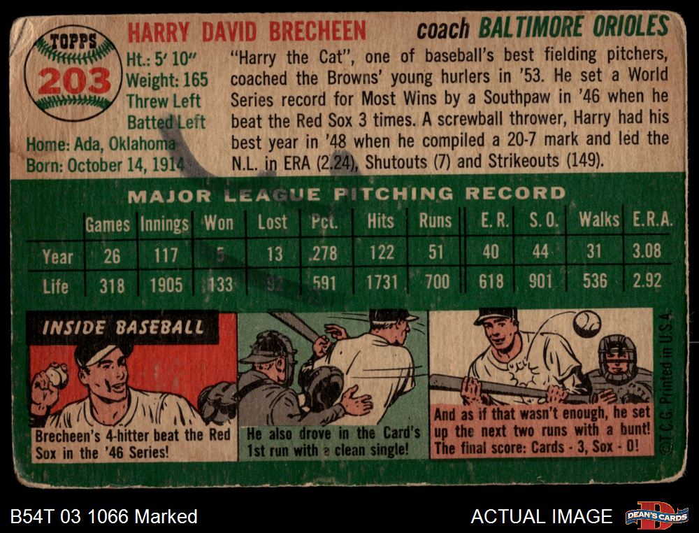 1954 Topps #203 Harry Brecheen