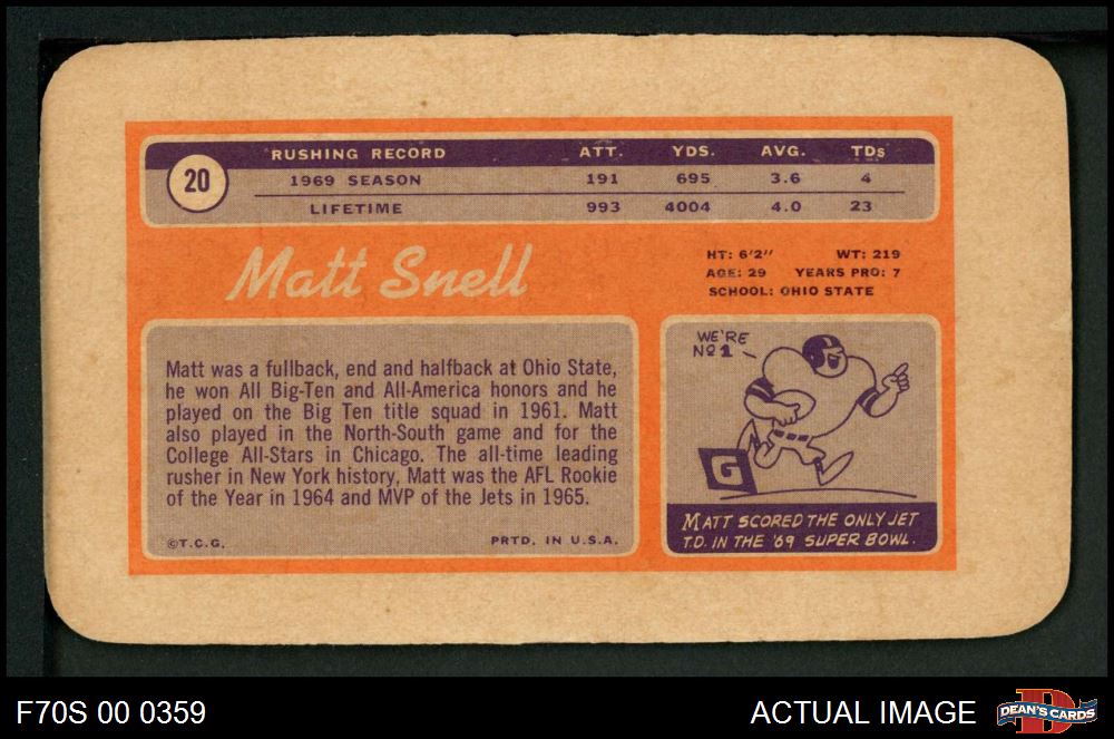 1970 Topps Super #20 Matt Snell 4 - VG/EX