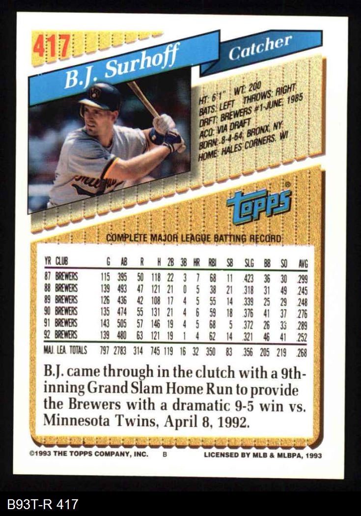 1993 Topps Baseball Cards (3,975 available)1993 Topps Brewers (170 available)
