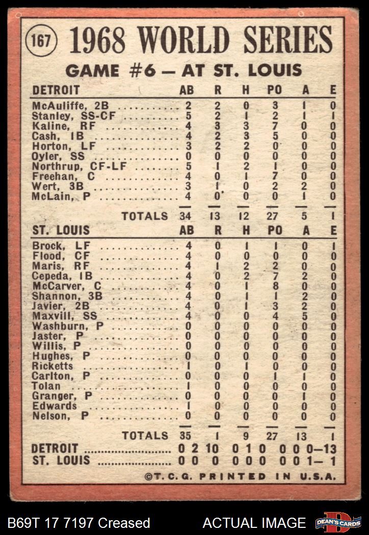 1969 Topps #167 1968 World Series - Game #6 - Tiger 10 Run Inning Ties Mark