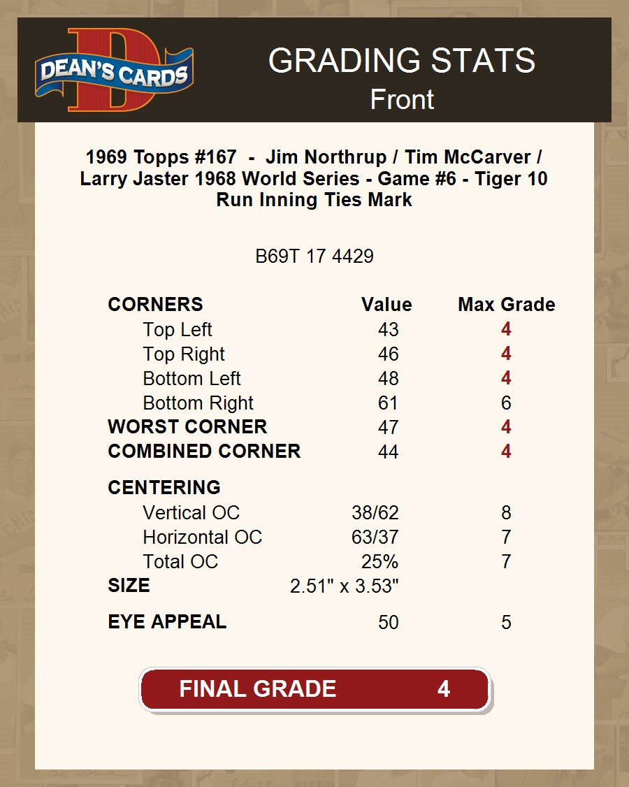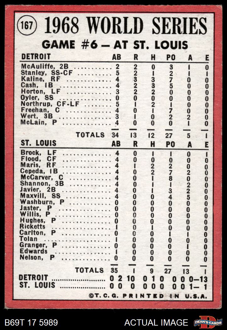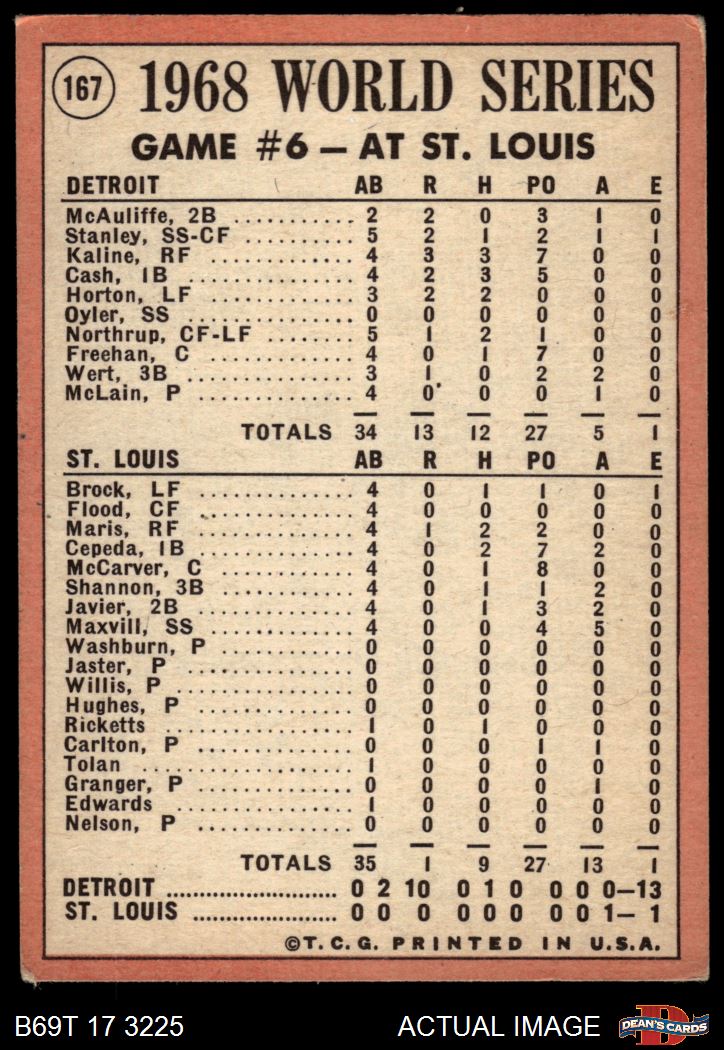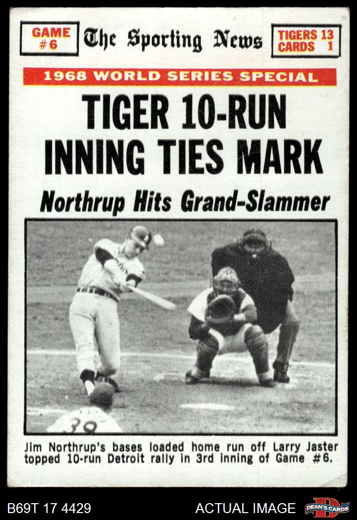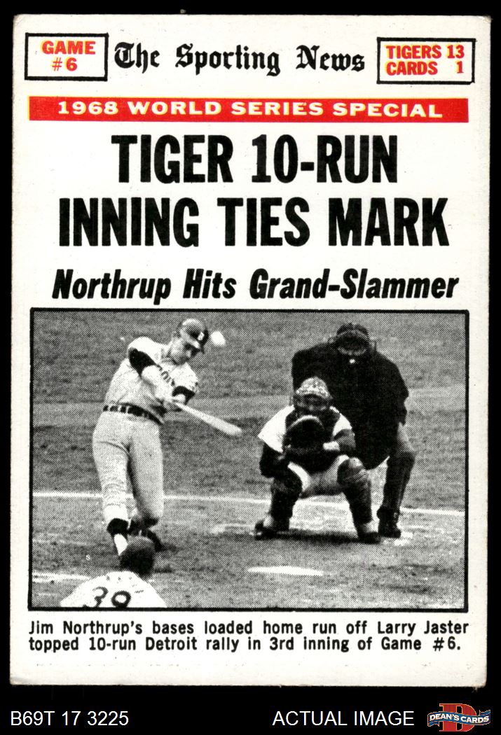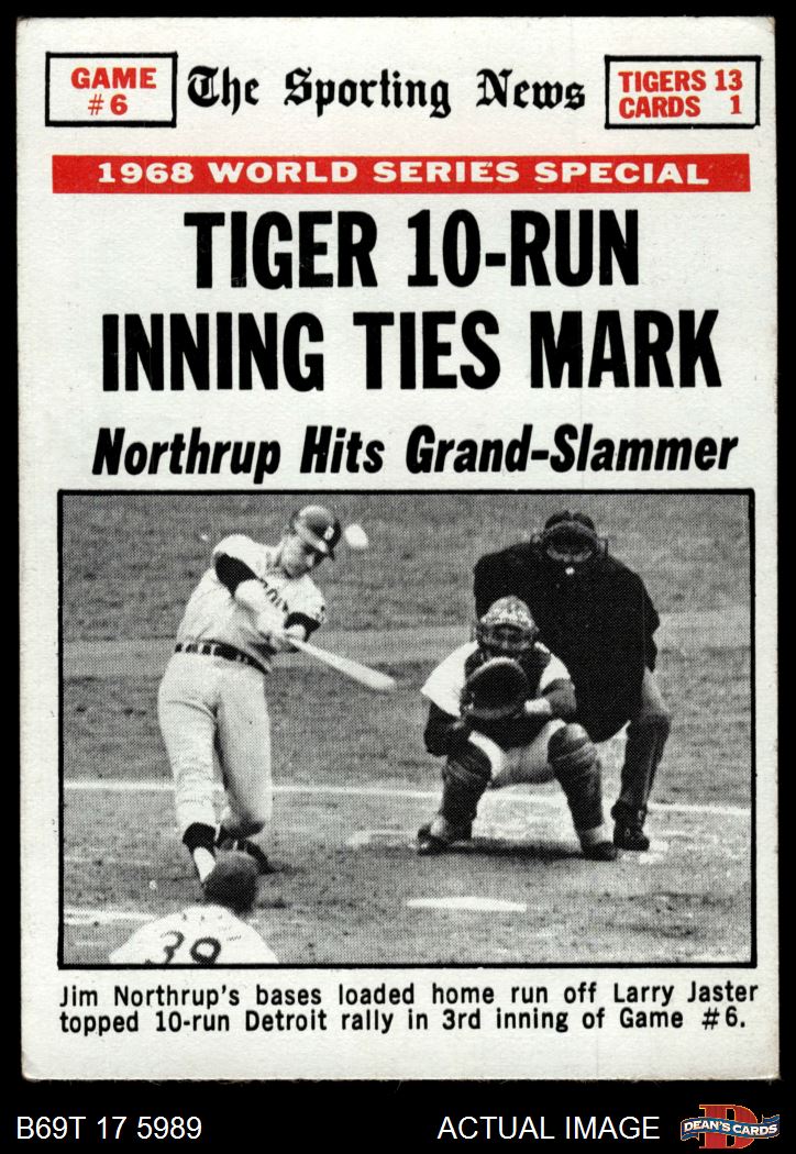 1969 Topps #167 - Jim Northrup / Tim McCarver / Larry Jaster 1968 World Series - Game #6 - Tiger 10 Run Inning Ties Mark 4 - VG/EX