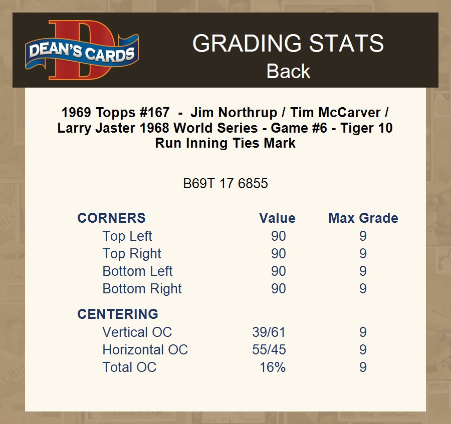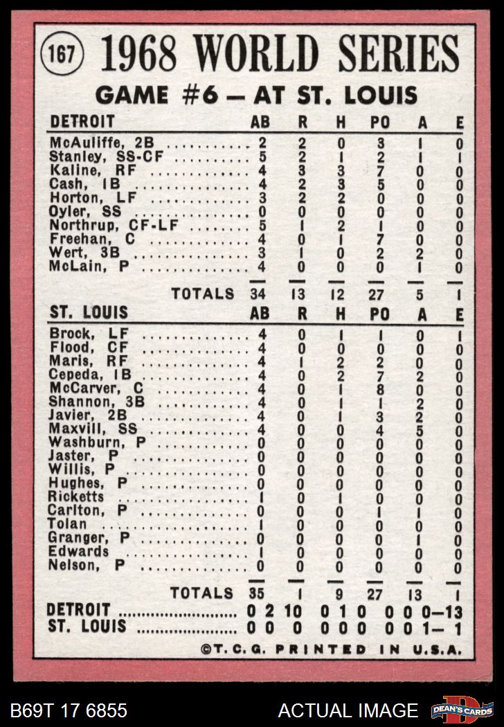 1969 Topps #167 - Jim Northrup / Tim McCarver / Larry Jaster 1968 World Series - Game #6 - Tiger 10 Run Inning Ties Mark 6 - EX/MT