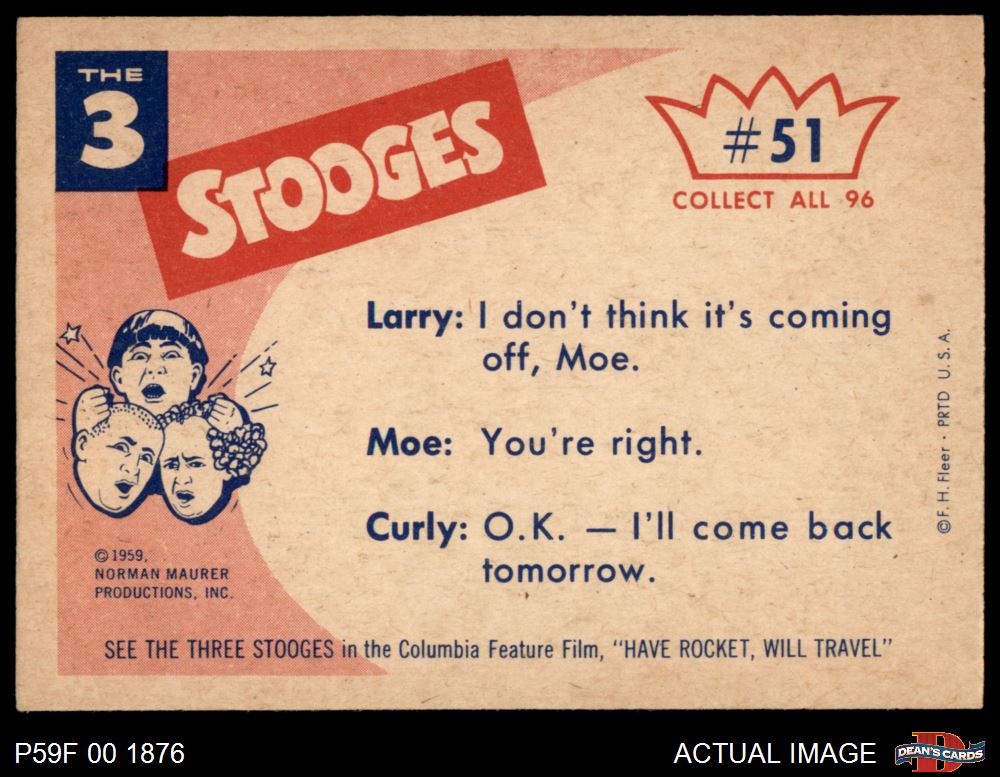 1959 Fleer Three Stooges #51 Be Careful this is My Only 4 - VG/EX