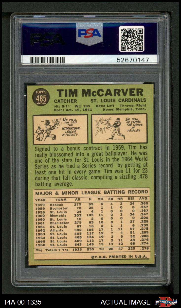 1967 Topps #485 Tim McCarver PSA 7 - NM