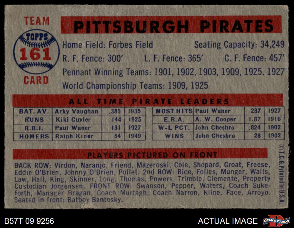 1957 Topps #161 Pirates Team 2 - GOOD