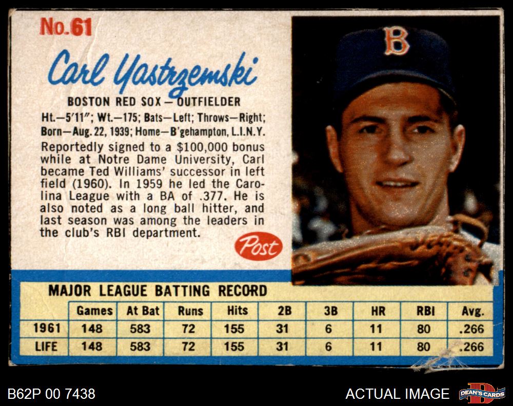 1962 Post Cereal #61 Carl Yastrzemski 1.5 - FAIR