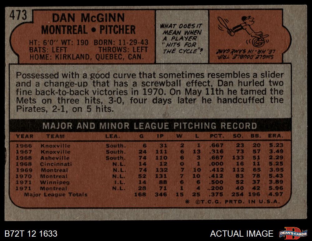 1972 Topps #473 Dan McGinn 3 - VG