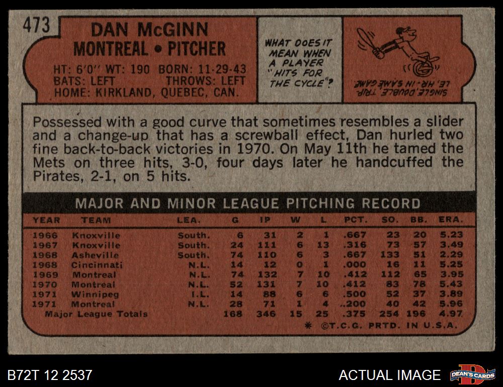 1972 Topps #473 Dan McGinn 4 - VG/EX