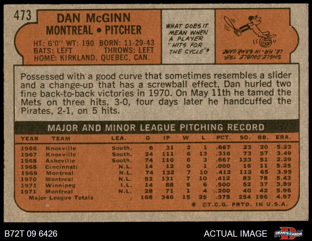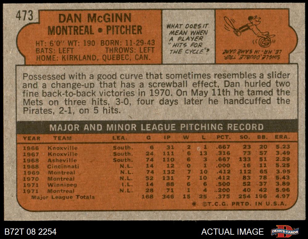 1972 Topps #473 Dan McGinn 7 - NM