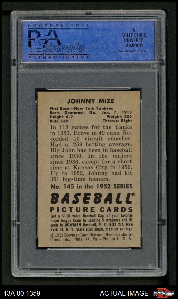 1952 Bowman #145 Johnny Mize PSA 7 - NM