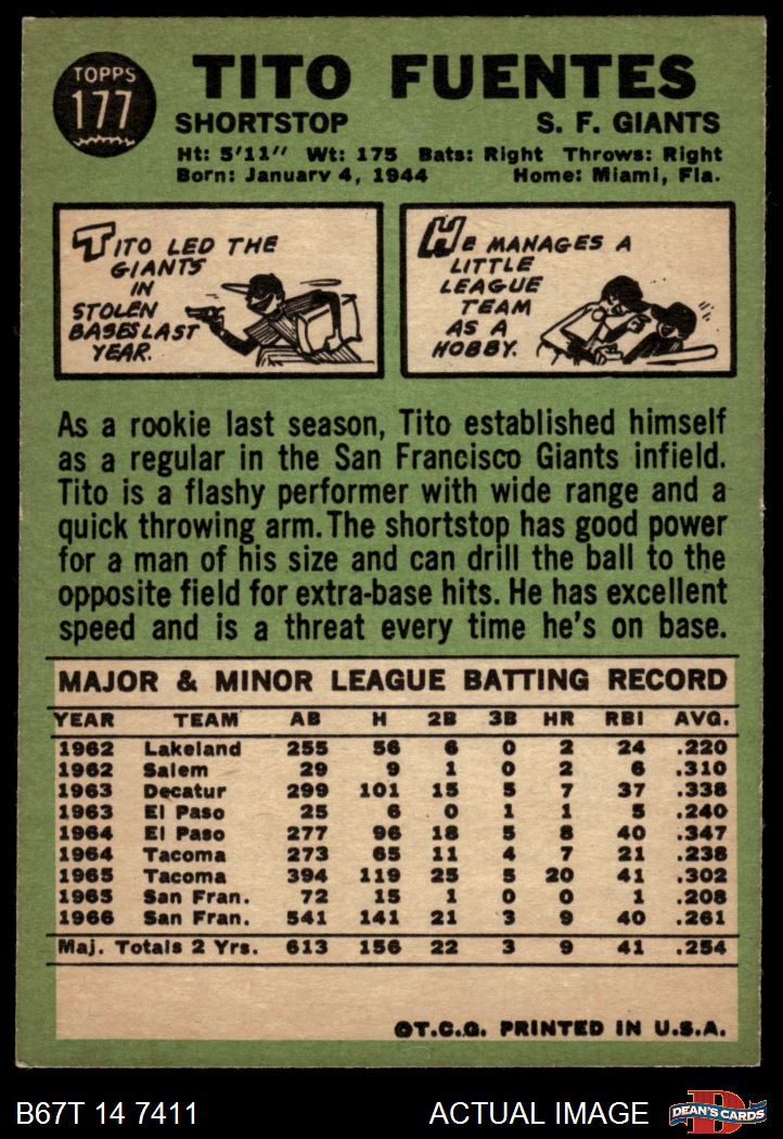 1967 Topps #177 Tito Fuentes