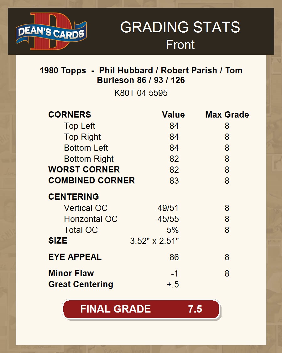 1980 Topps - Phil Hubbard / Robert Parish / Tom Burleson 86 / 93 / 126 7.5 - NM+