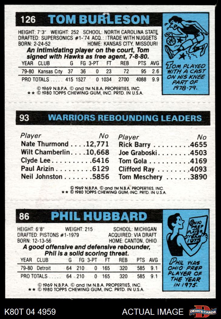1980 Topps - Phil Hubbard / Robert Parish / Tom Burleson 86 / 93 / 126 8 - NM/MT