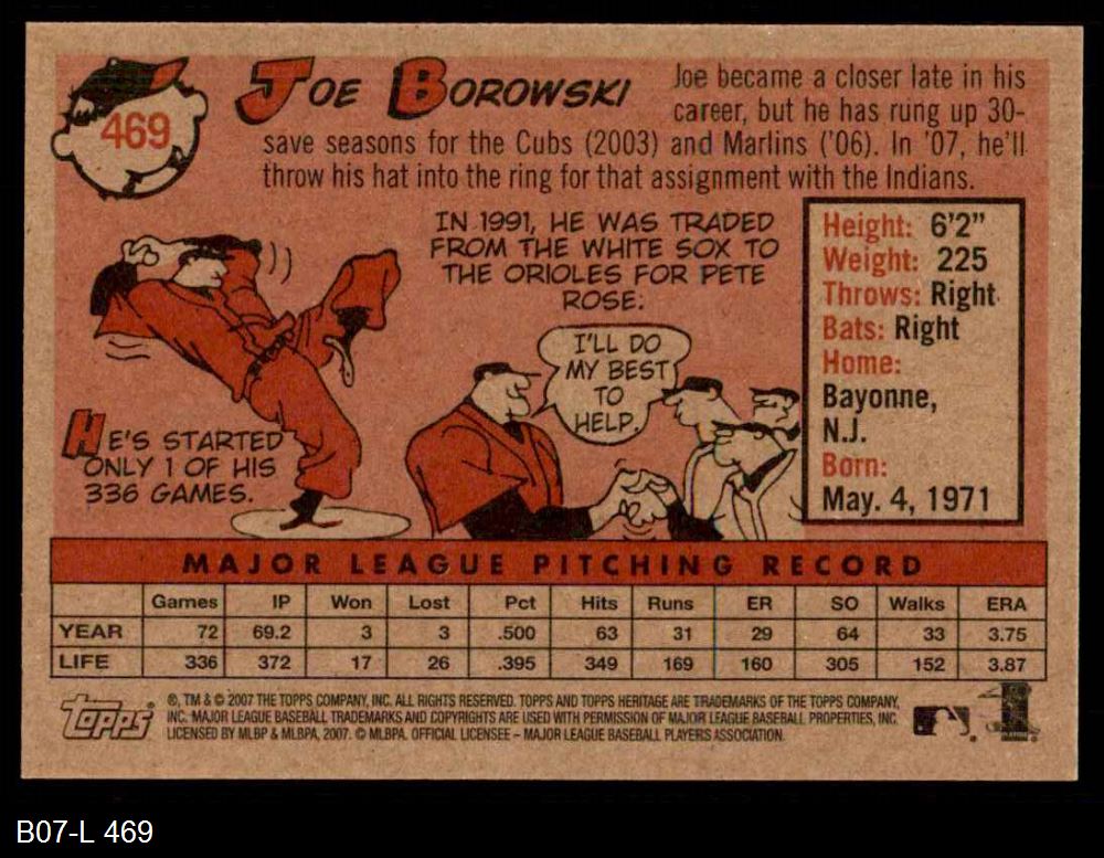 2007 Topps Heritage #469 Joe Borowski 8 - NM/MT
