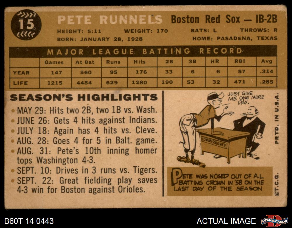 1960 Topps #15 Pete Runnels 1 - POOR
