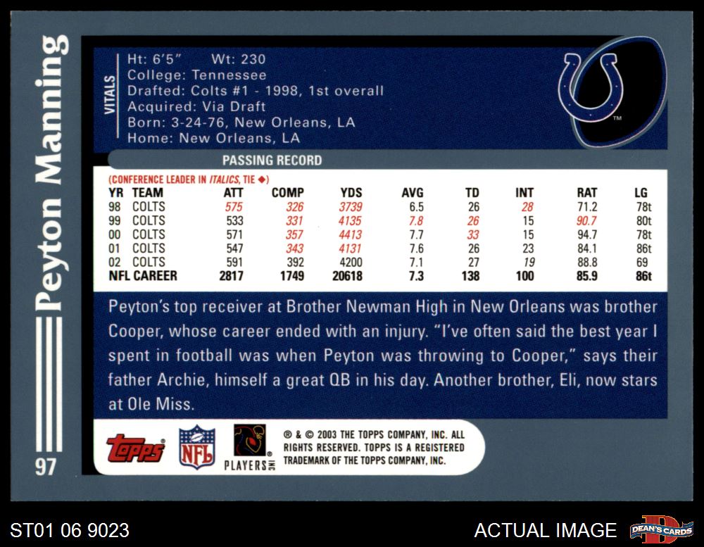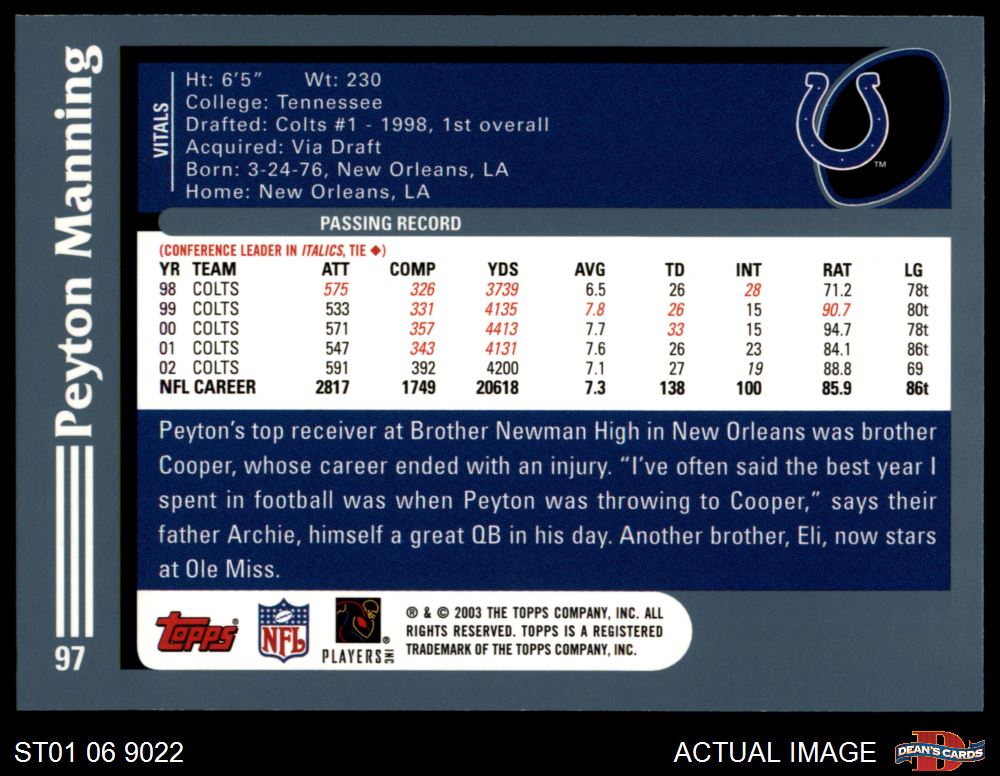 2003 Topps Football Cards (1,234 available)2003 Topps Colts (31 available)