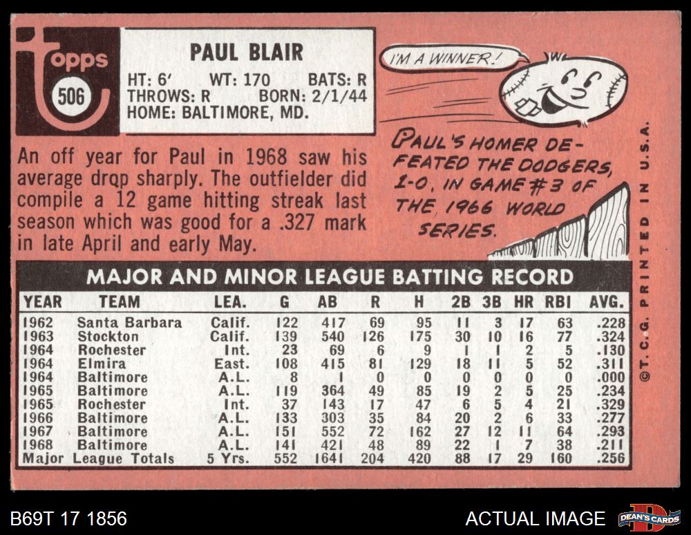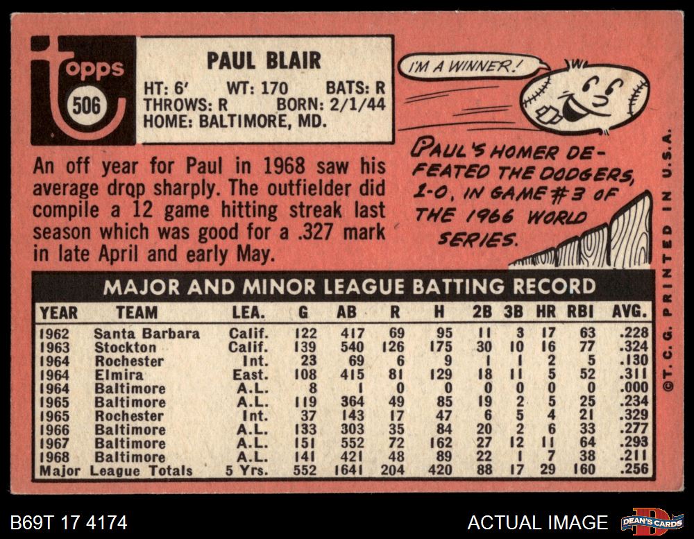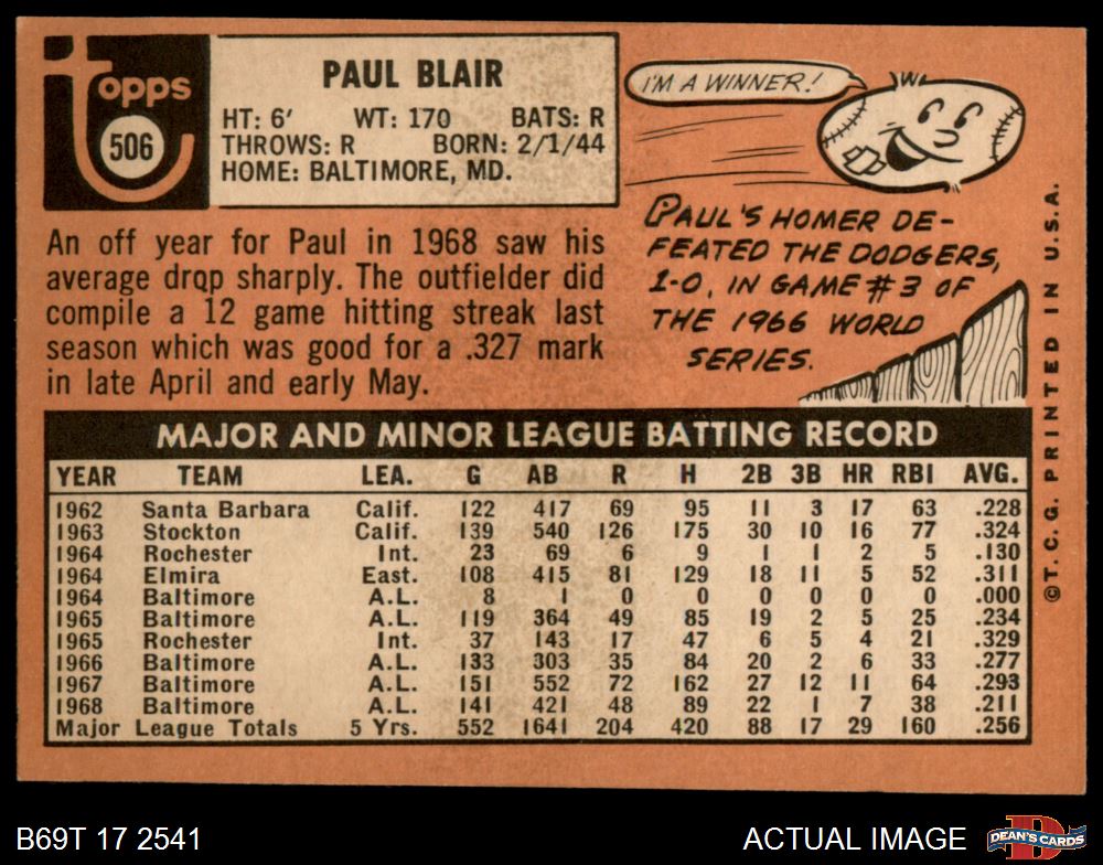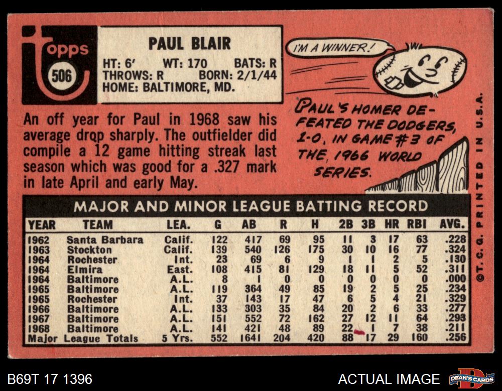 1969 Topps #506 Paul Blair 4 - VG/EX