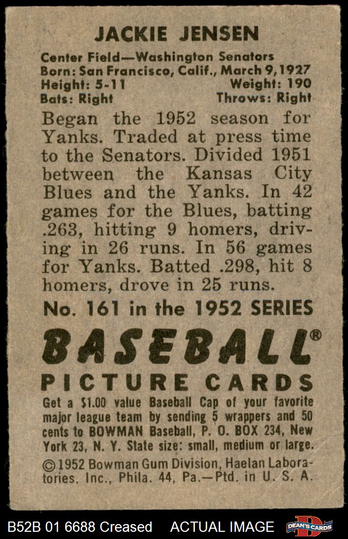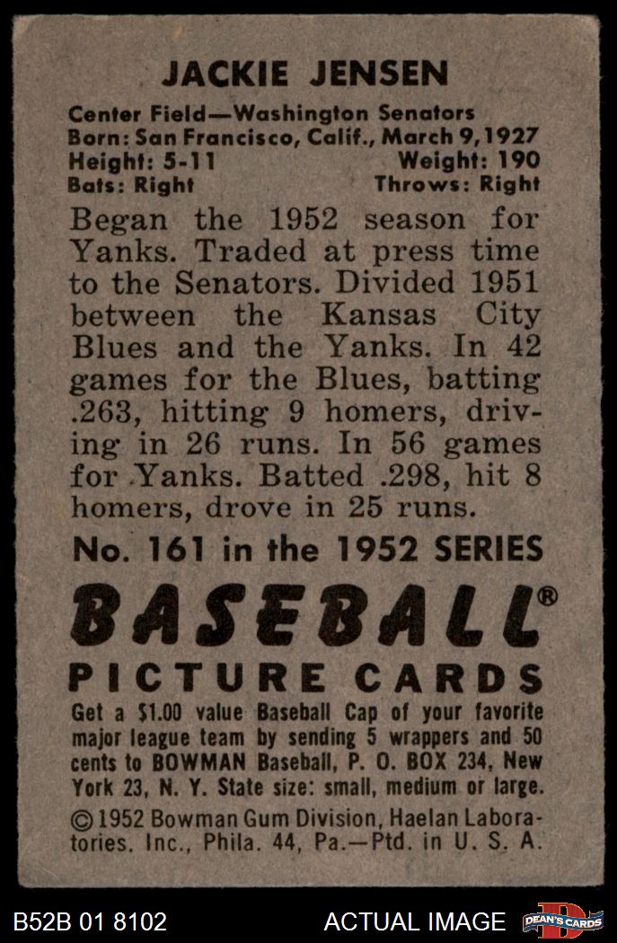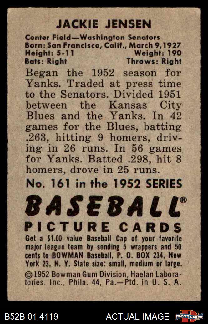 1952 Bowman #161 Jackie Jensen
