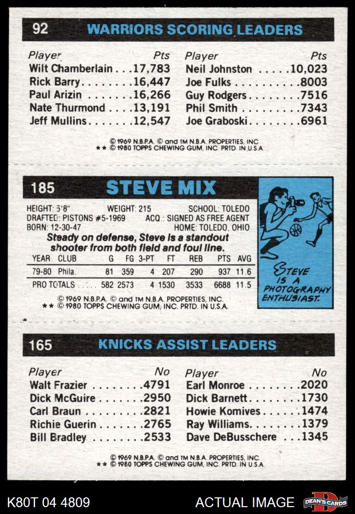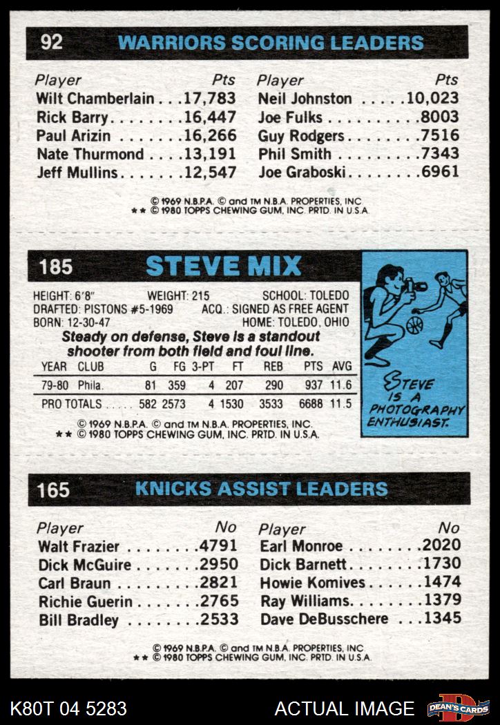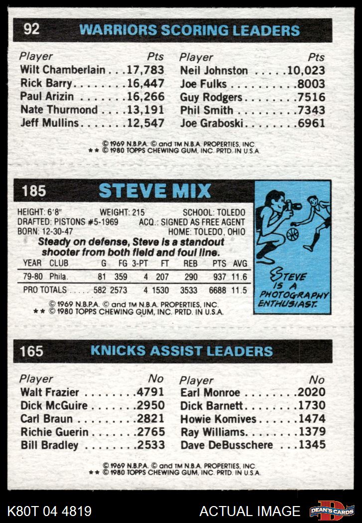 1980 Topps - Michael Ray Richardson / Steve Mix / Robert Parish 165 / 185 / 92 7 - NM