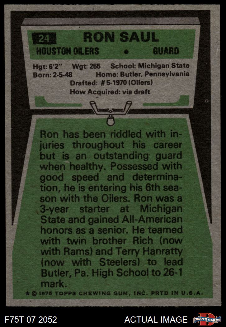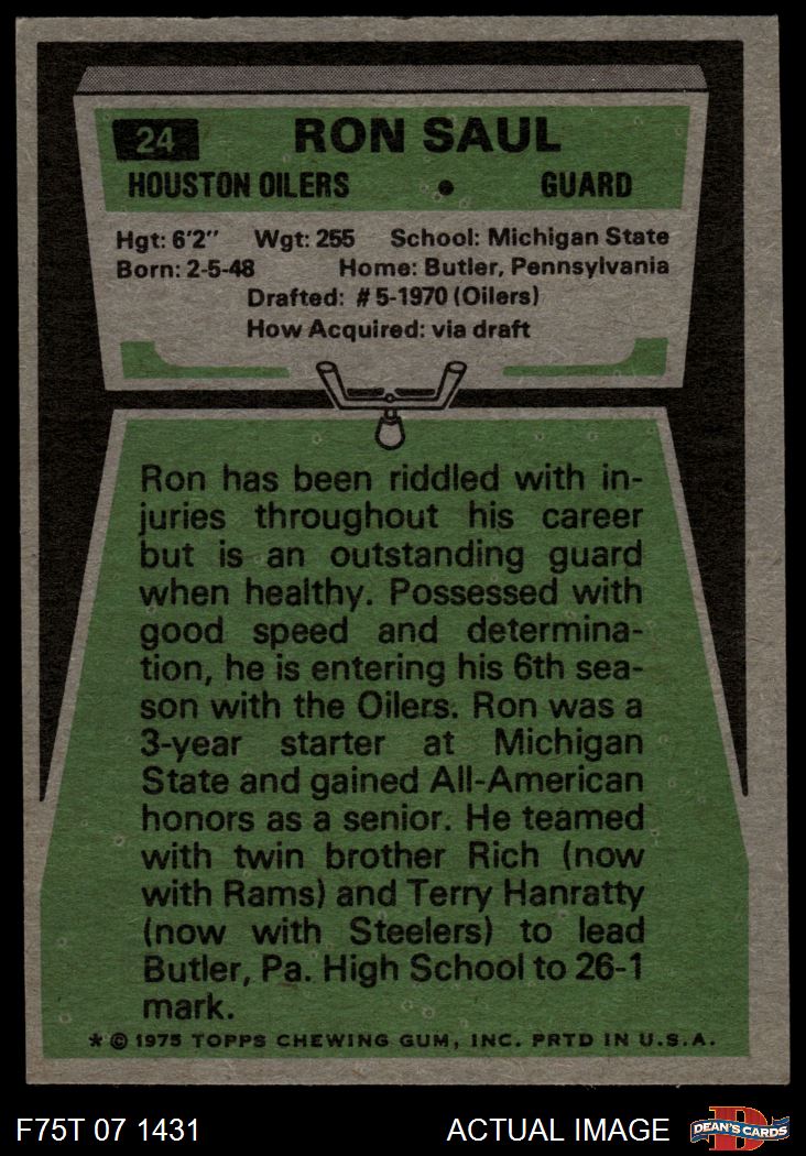 1975 Topps #24 Ron Saul 6 - EX/MT