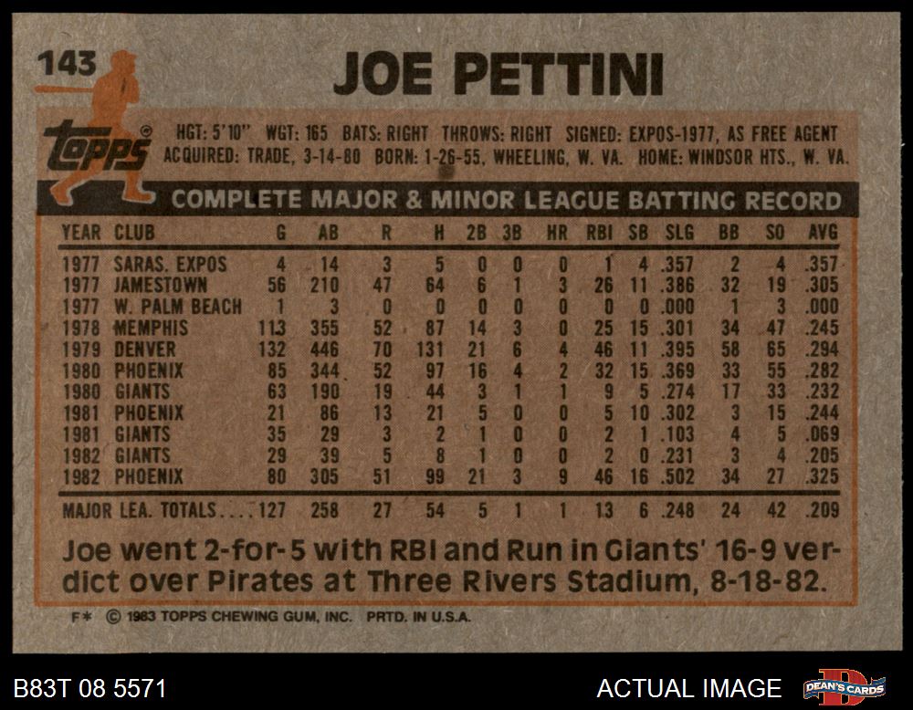 1983 Topps #143 Joe Pettini