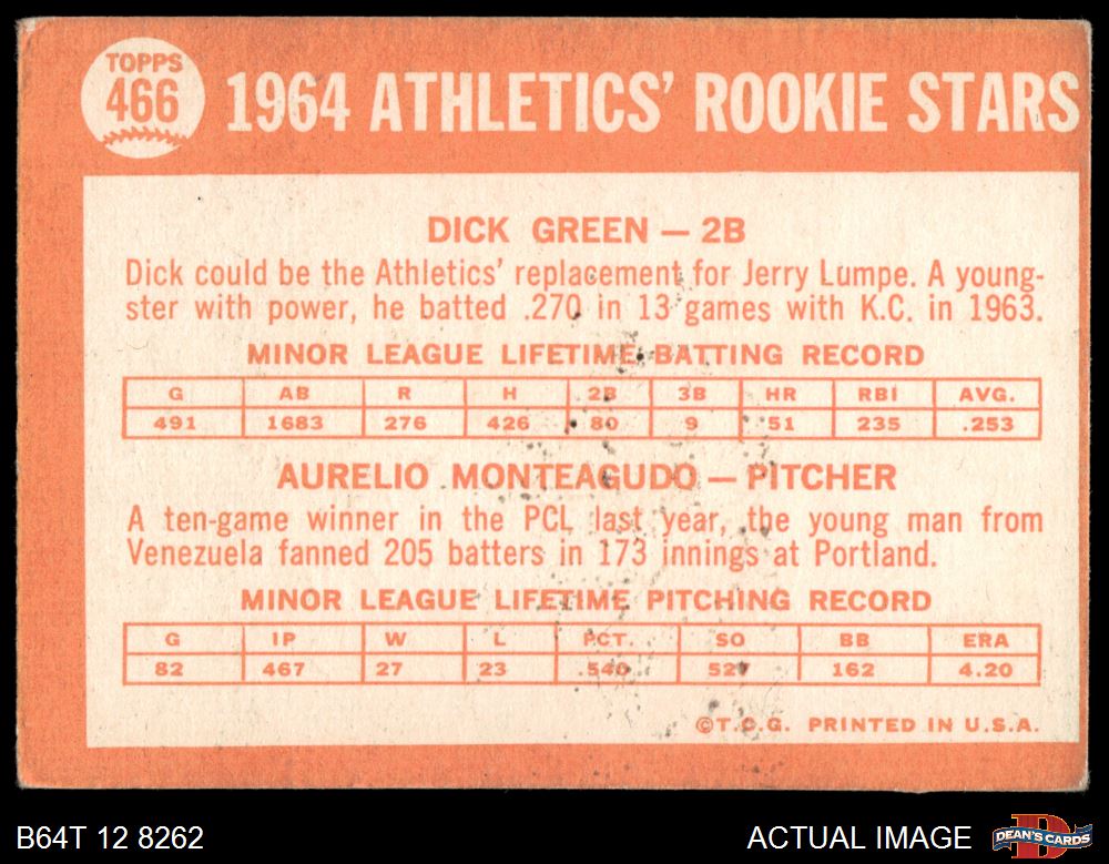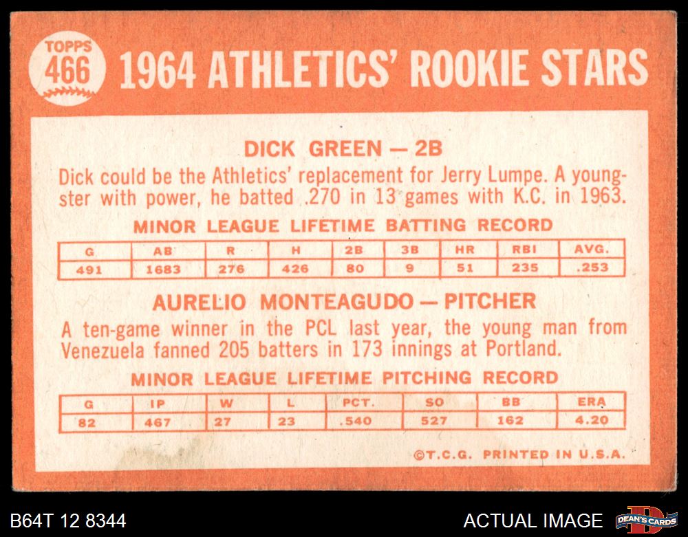 1964 Topps #466 - Dick Green / Aurelio Monteagudo Athletics Rookies 2 - GOOD