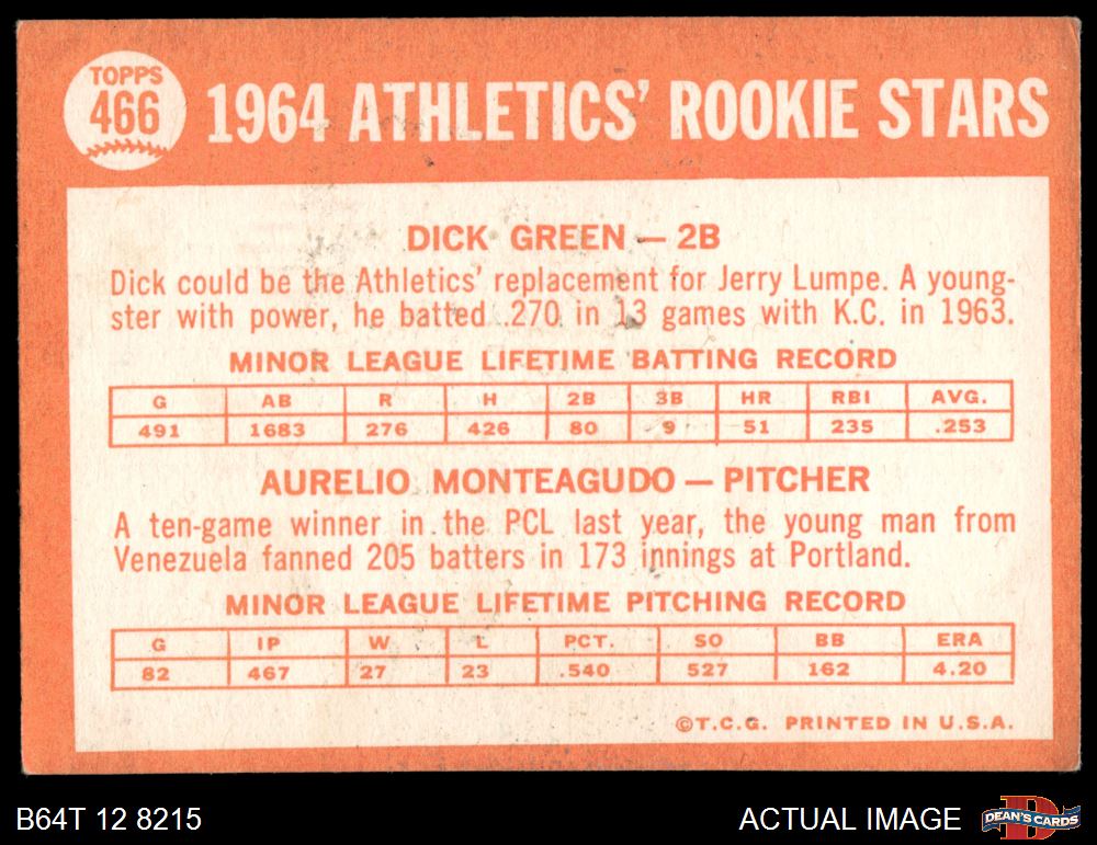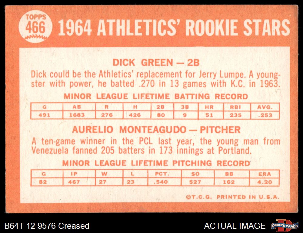 1964 Topps #466 - Dick Green / Aurelio Monteagudo Athletics Rookies 3 - VG