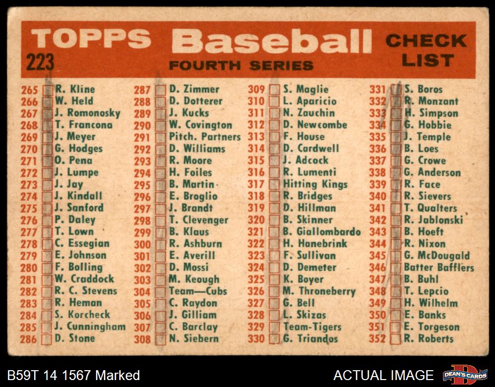 1959 Topps #223 Cardinals Team Checklist 1.5 - FAIR