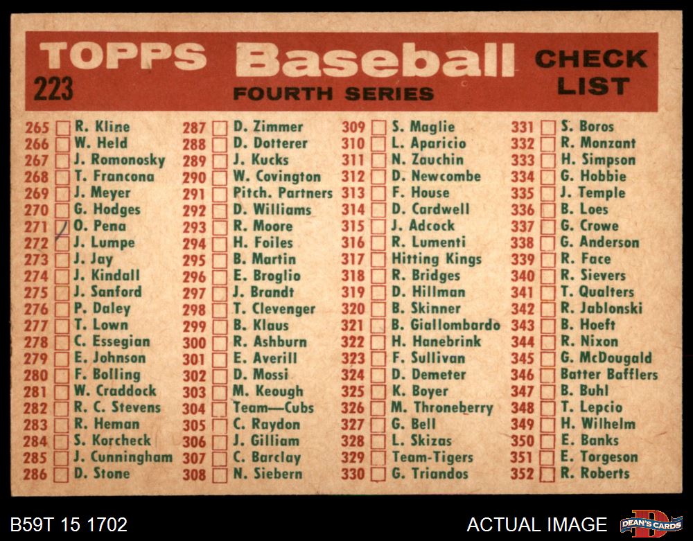 1959 Topps #223 Cardinals Team Checklist 6 - EX/MT