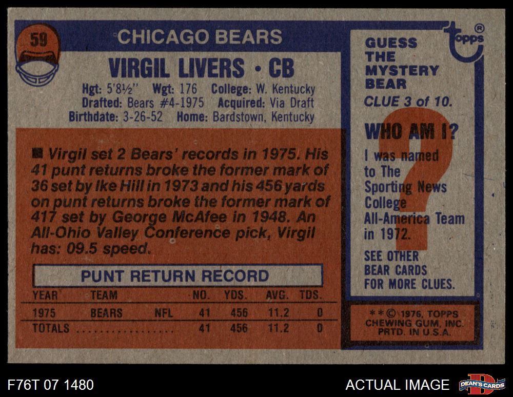 1976 Topps #59 Virgil Livers 4 - VG/EX