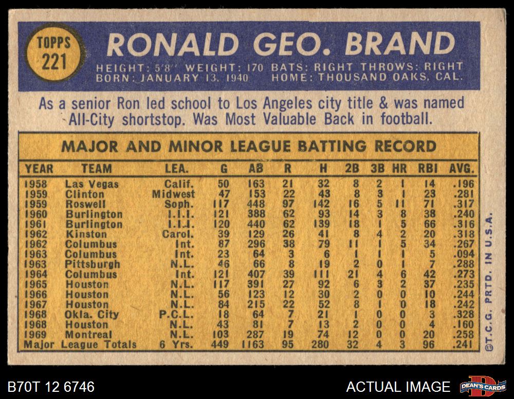 1970 Topps #221 Ron Brand 4 - VG/EX