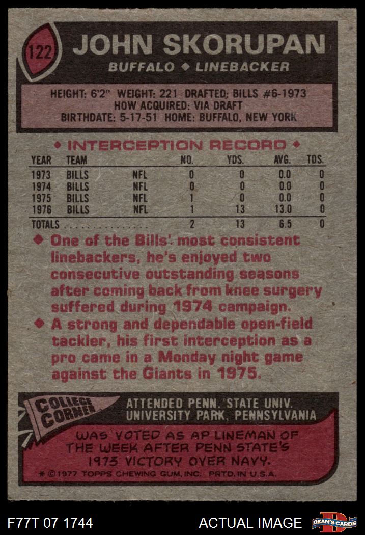 1977 Topps #122 John Skorupan