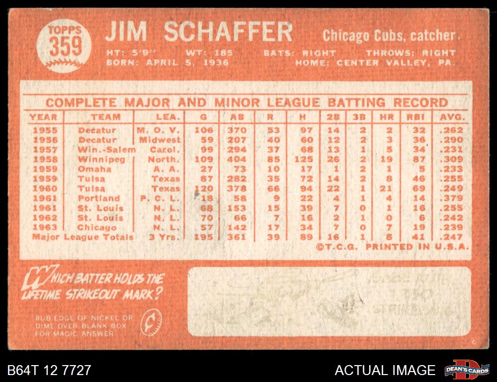 1964 Topps #359 Jim Schaffer 3.5 - VG+