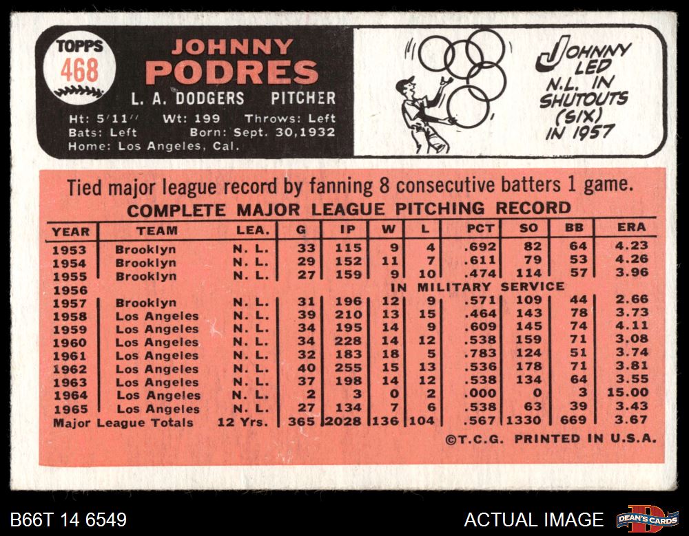 1966 Topps #468 Johnny Podres 4 - VG/EX